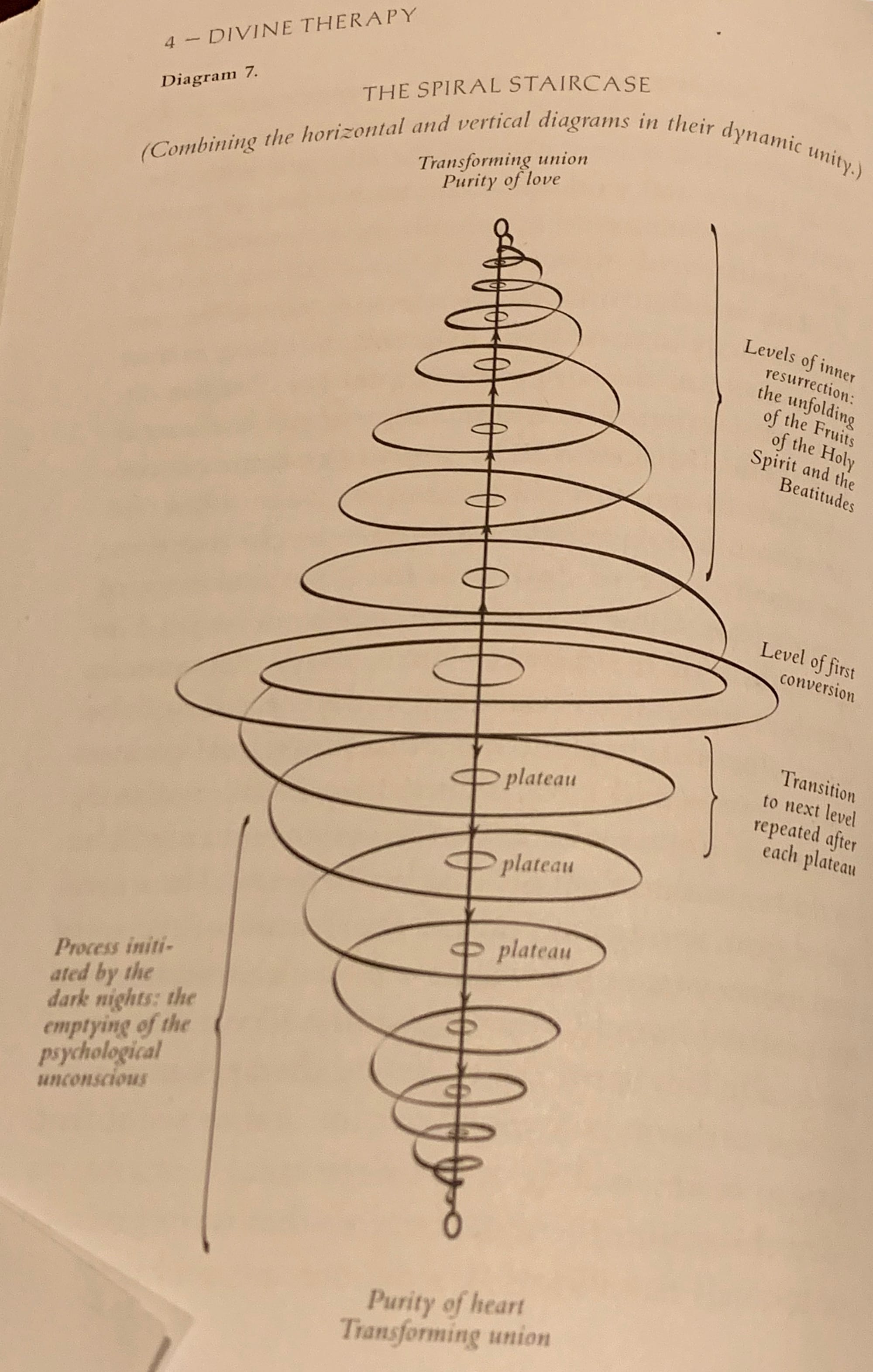 As you descend, paradoxically, you also rise to the spiritual heights. Thomas Keating illustrates it this way: