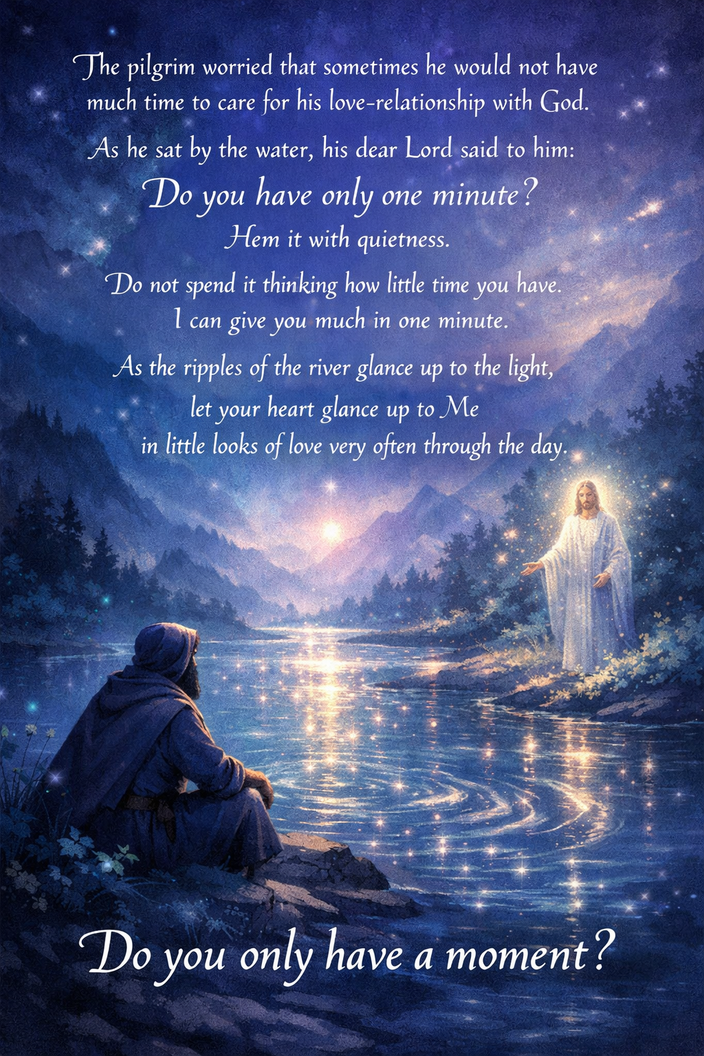 Sitting in silence for twenty minutes can feel impossible. Even ten minutes may seem daunting. But I’ve learned that even a single minute, offered to God, can open our hearts to His presence. A glance toward Him in love, repeated often, transforms the day.