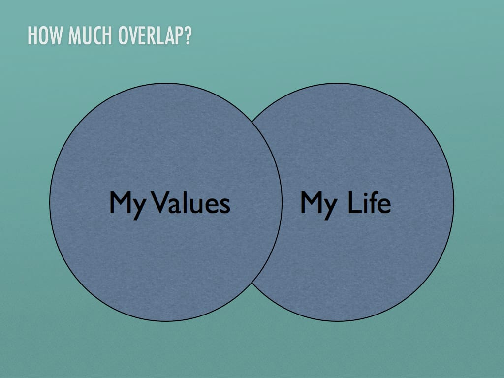 I made a long list of values and wrote two or three concrete action steps for each. At that time, there was little overlap between my stated values and how I was actually living.