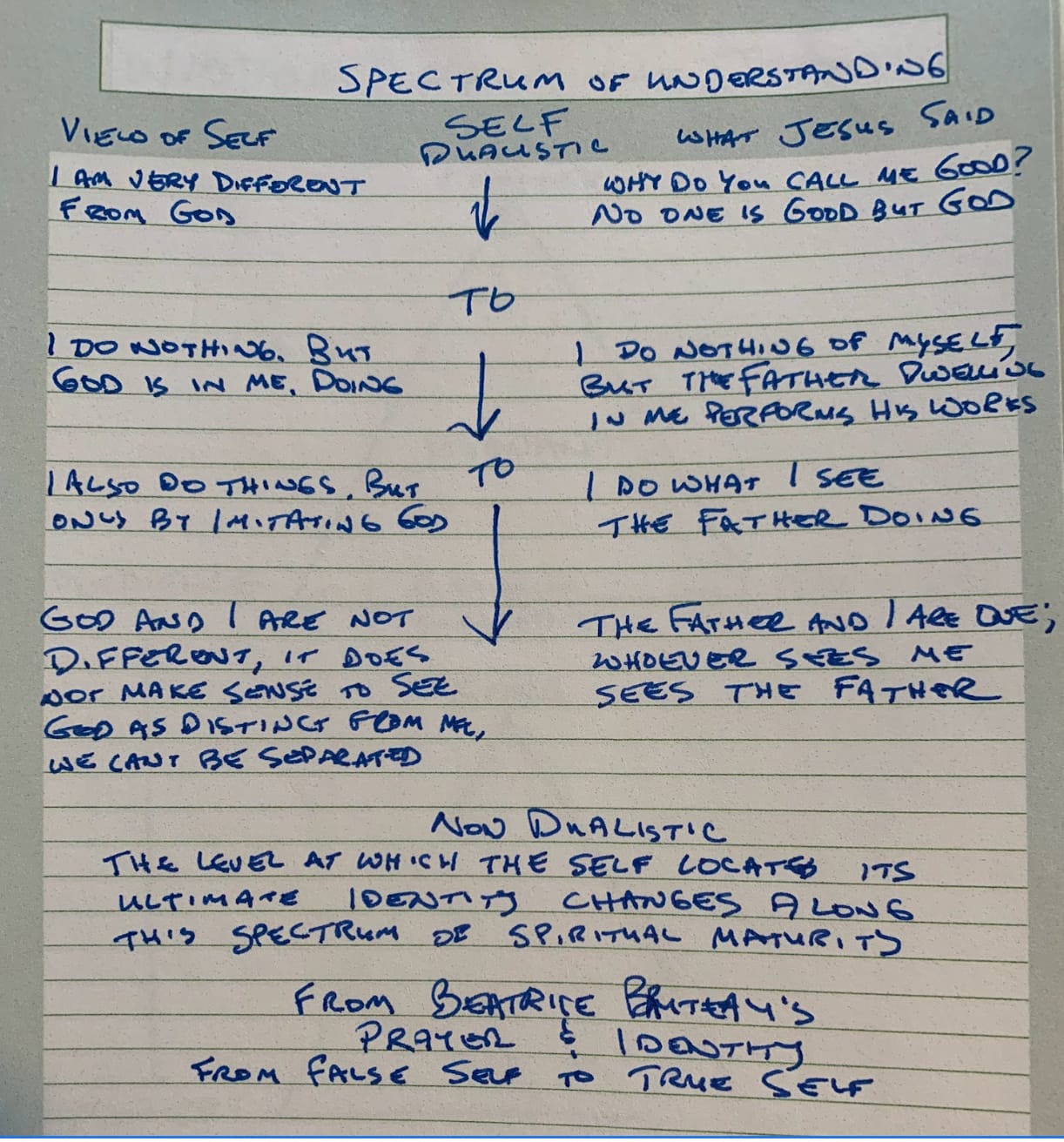 Cynthia Bourgeault, in her commentary on Bruteau’s work below, says, “our locus of identity is constantly fluctuating back and forth along a continuum from constructed to unboundaried.”