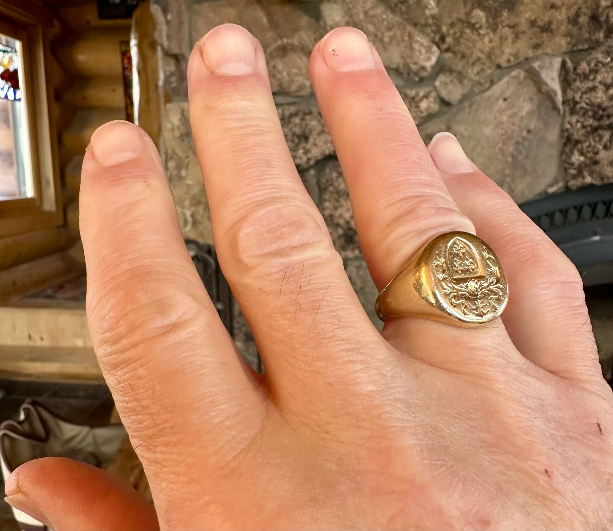 So, identity was closely tied to family. Some years ago, Genie gave me a signet ring with the Burch family crest celebrating this family identity. My brother was named after a famous relative, William Barrett Travis, the commander of the Alamo.