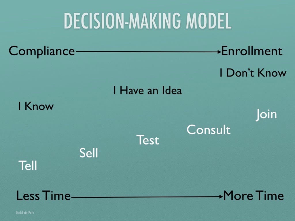 Whether leading a team or a congregation, understanding how we make decisions is just as important as what we decide. Most organizations live in the “Tell/Sell” zone — fast but shallow. But truly transformational leadership involves inviting others into the process, even when it takes more time.
