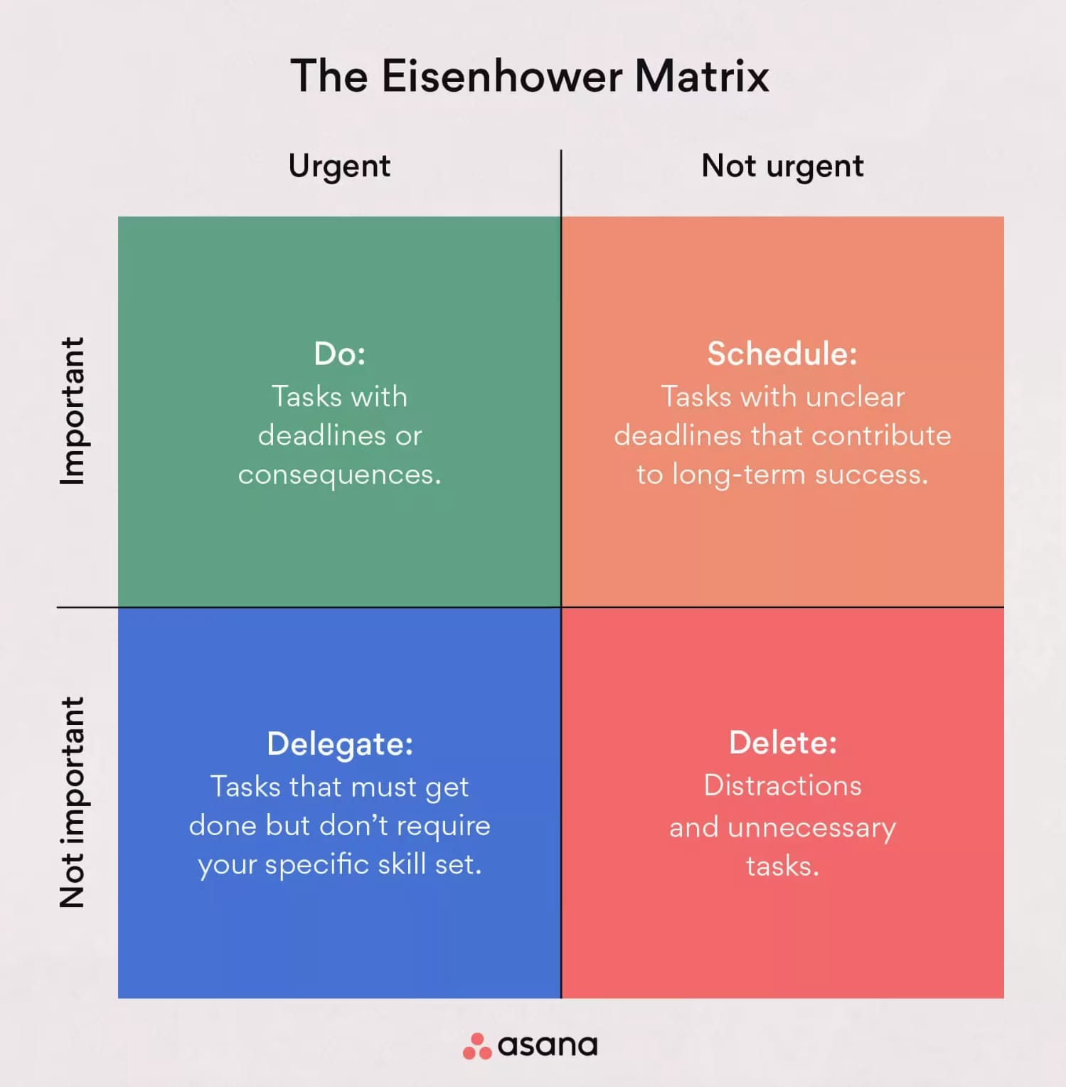 It’s a 2x2 quadrant chart that sorts tasks by two dimensions: