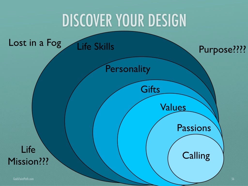 I realized God would not have gifted me for “A” and expected me to do “B“. I realized that my life’s passion emerged from what Richard Rohr would call my ‘father wound’. So, I began to discover my design, first by coming to understand my Myers-Briggs personality style, then using the Enneagram for a deeper look at my wiring. I came to see that my calling (see my post on Calling) would be at the intersection of my gifts and passion. But, my church had never helped me understand my gifts.