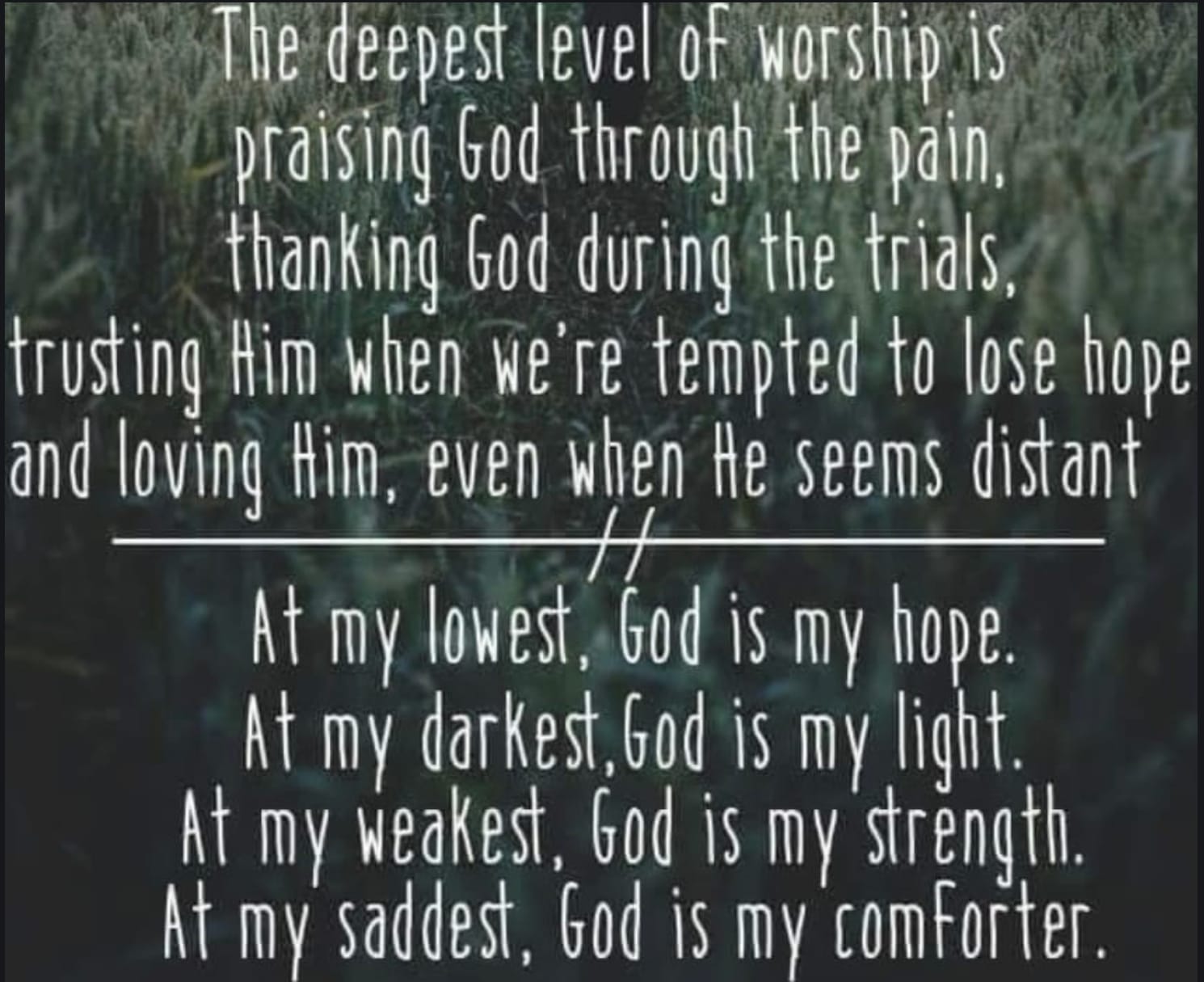 Even though I walk through the darkest valley, I will fear no evil, for you are with me; your rod and your staff, they comfort me.