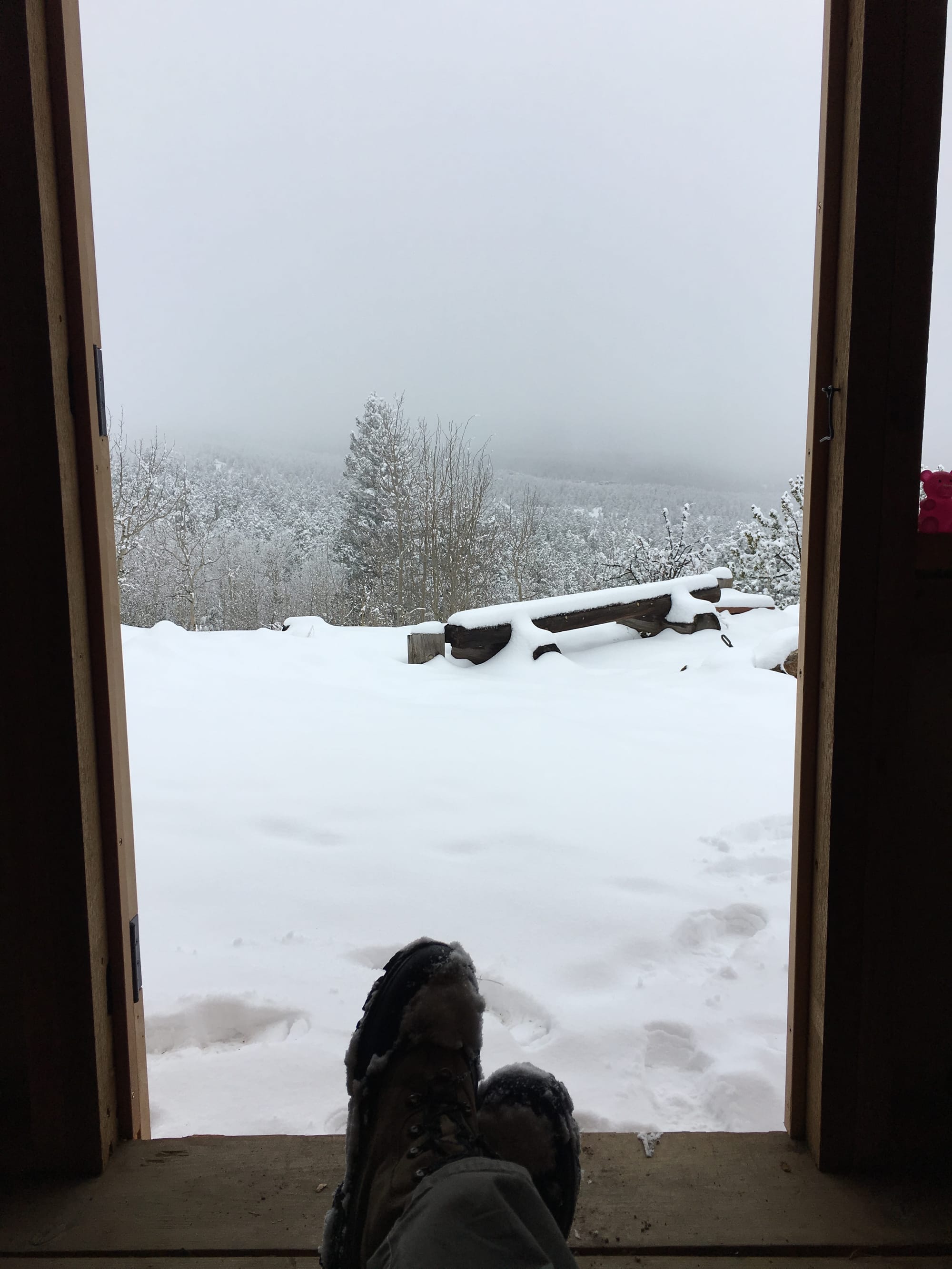 In April 2016, we had 20 men here for Manmaker. It snowed three feet that week. After I had done a short talk, the men headed off into the snow for a Manmaker challenge. I learned the first year not to get drawn into that testosterone contest. So, I went over to our fire pit and mountain Hytte and sat for a while.